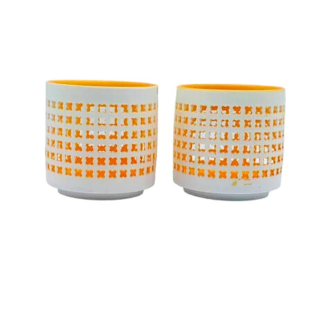 Duo de Bougeoirs Moucharabiehs au motif géométrique de couleur Orange
